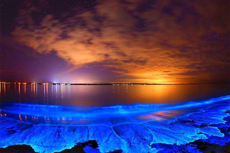 ۲. ساحل نقرهای؛ درخشش جادویی آب در شب