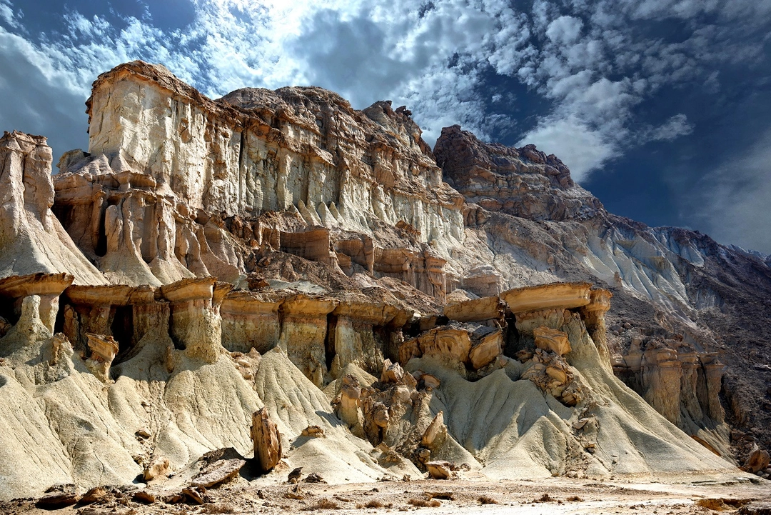 - بادهای قدرتمند 🌬️ که در طی هزاران سال صخرهها را تراشیدهاند.